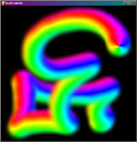 Another bitmap painter, this one transforms the bitmap before blitting. Rotation is based on vertical location, scale based on horizontal location. |