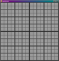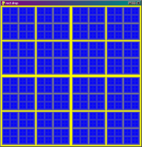 Recursive quartering. Divides the screen into quarters. Takes each of those quarters and divides it into quarters. Takes each of those quarters and... Recursion is a cool and even sometimes useful programming concept. |
